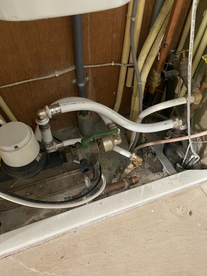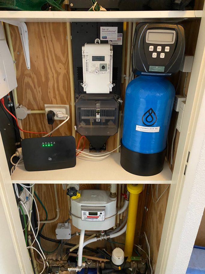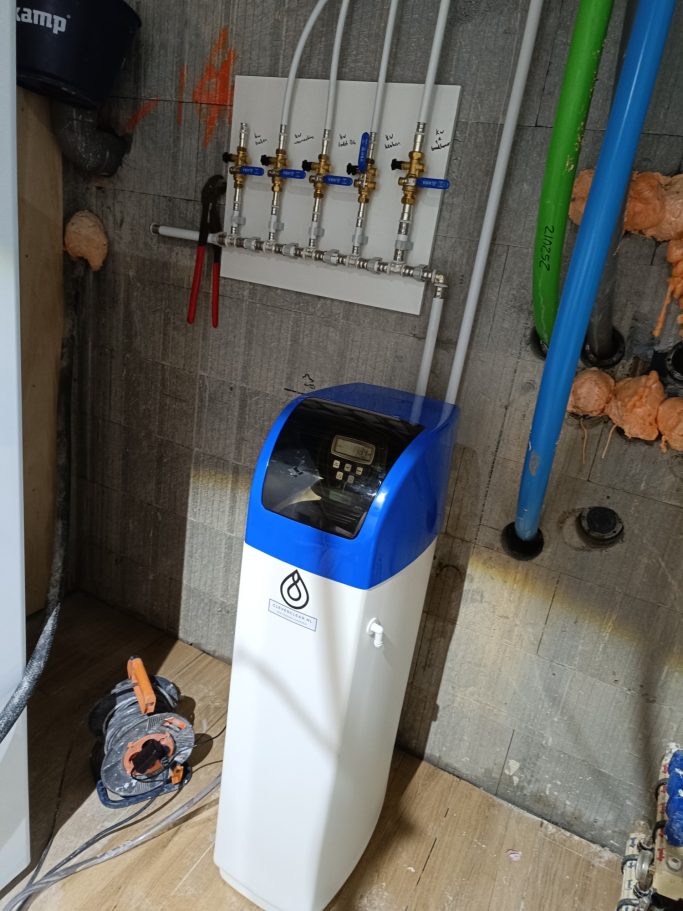 In de volgende 2 situaties is gebruik gemaakt van een waterontharder in cabinet (het zout reservoir en de waterontharder in 1). De waterontharders zijn beide niet in de meterkast geplaatst, maar in een trapkast en in de kelder. In beide situaties hebben wij de afvoer doorgelegd naar de keuken en daar een aansluiting gemaakt, in het geval van de waterontharder in de kelder moet het water dus omhoog gepompt worden dit is echter geen probleem voor de waterontharder en er zijn ook geen extra pompjes nodig. Wij hebben vanaf de meter in de meterkast een leiding gemaakt naar de waterontharder en vanuit de waterontharder terug op de leidingen van het huis. In het geval van de waterontharder in de kelder, hebben wij een verdeling gemaakt, zodat er per ruimte het water kan worden afgesloten.